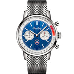 The Breitling Top Time B01 Shelby Cobra brings together vintage automotive flair and modern Swiss horology. Inspired by the iconic Shelby Cobra sports car, this chronograph blends a striking blue dial with white subdials and subtle red accents, reflecting the adrenaline of the race track. Housed in a 41mm stainless steel case with an exhibition caseback, the watch features the highly regarded Breitling Manufacture Caliber 01, offering a 70-hour power reserve and COSC-certified accuracy.