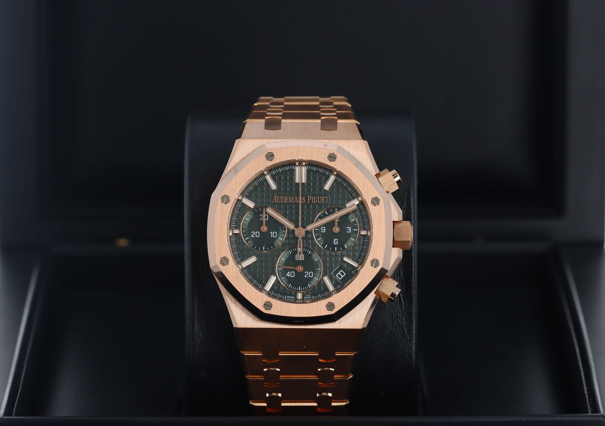 Audemars Piguet Royal Oak Chronograph 41mm, Green Dial - 18kt Rose Gold on Bracelet, 26240OR.OO.1320OR.08