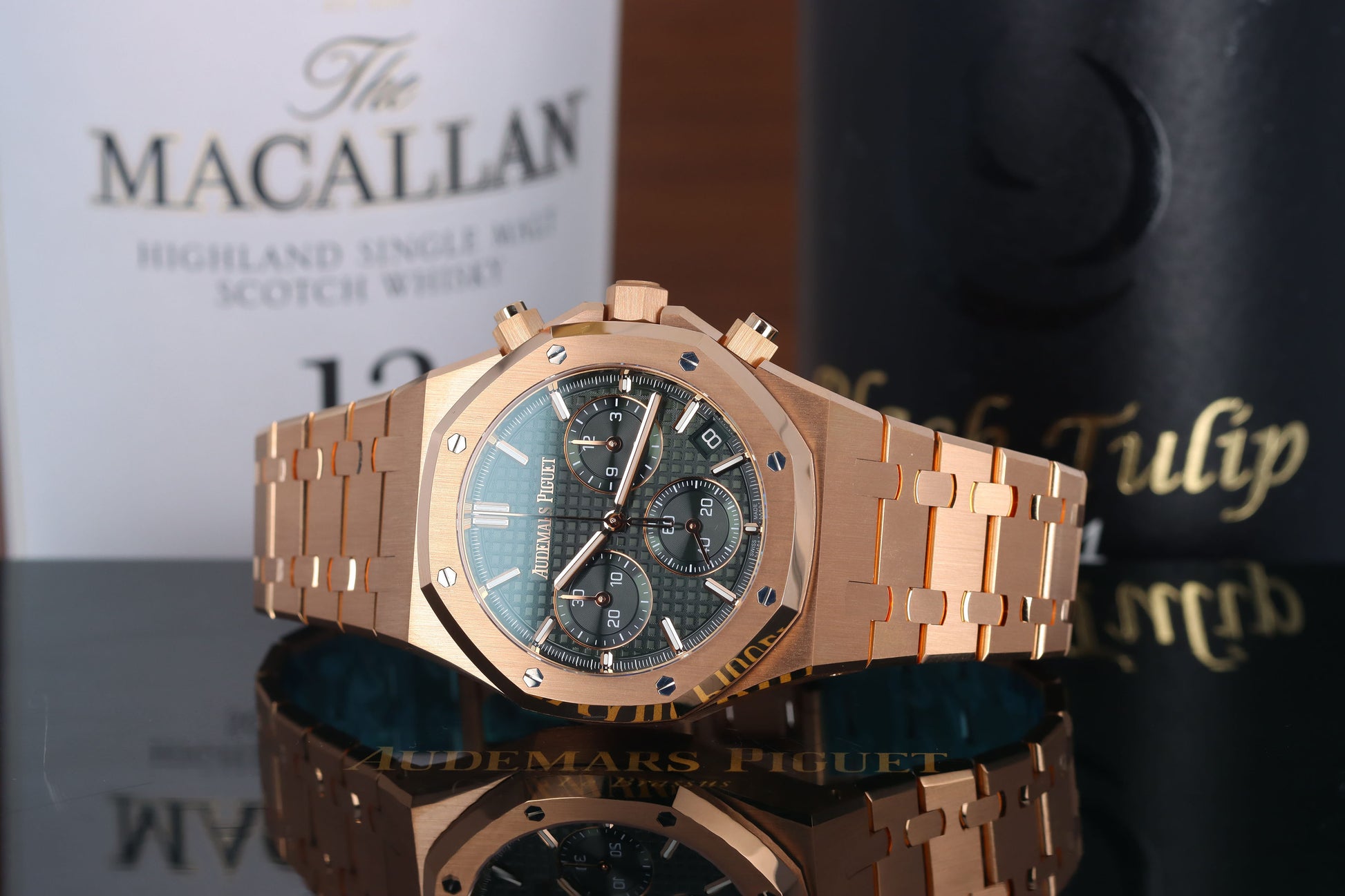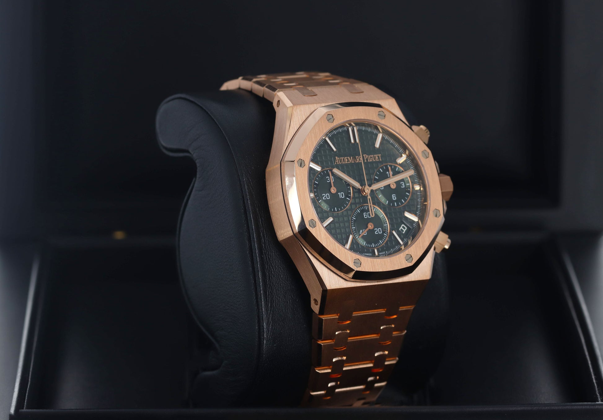 - Audemars Piguet Royal Oak Chronograph 41mm, Green Dial - 18kt Rose Gold on Bracelet, 26240OR.OO.1320OR.08